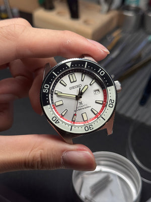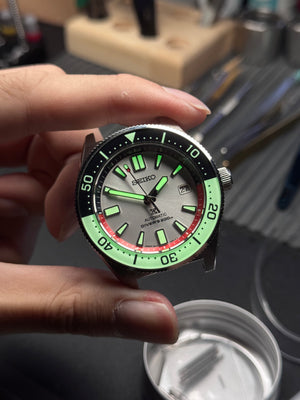 Dial: Aftermarket Seiko 62MAS Silver Sunburst Dial (C3 Lume)