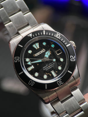 Dial: Aftermarket Seiko Custom Carbon Fiber Dial (BGW9 Lume)