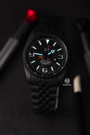 Dial: WZ Explorer Rose Gold Carbon Fiber Dial (BGW9 Lume)